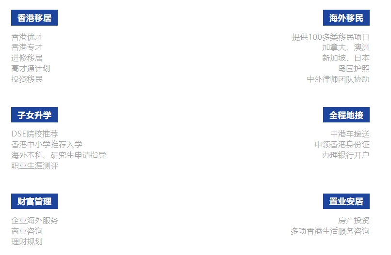 浩盟结合多样化服务与长期在地深耕的管理团队,旗下业务涉及商业咨询、海外创业、升学辅导、身份规划、财富管理、赴港置业创业等方面,产品类型多元,往来客户超10000人,个案成功率高,广受客户青睐。