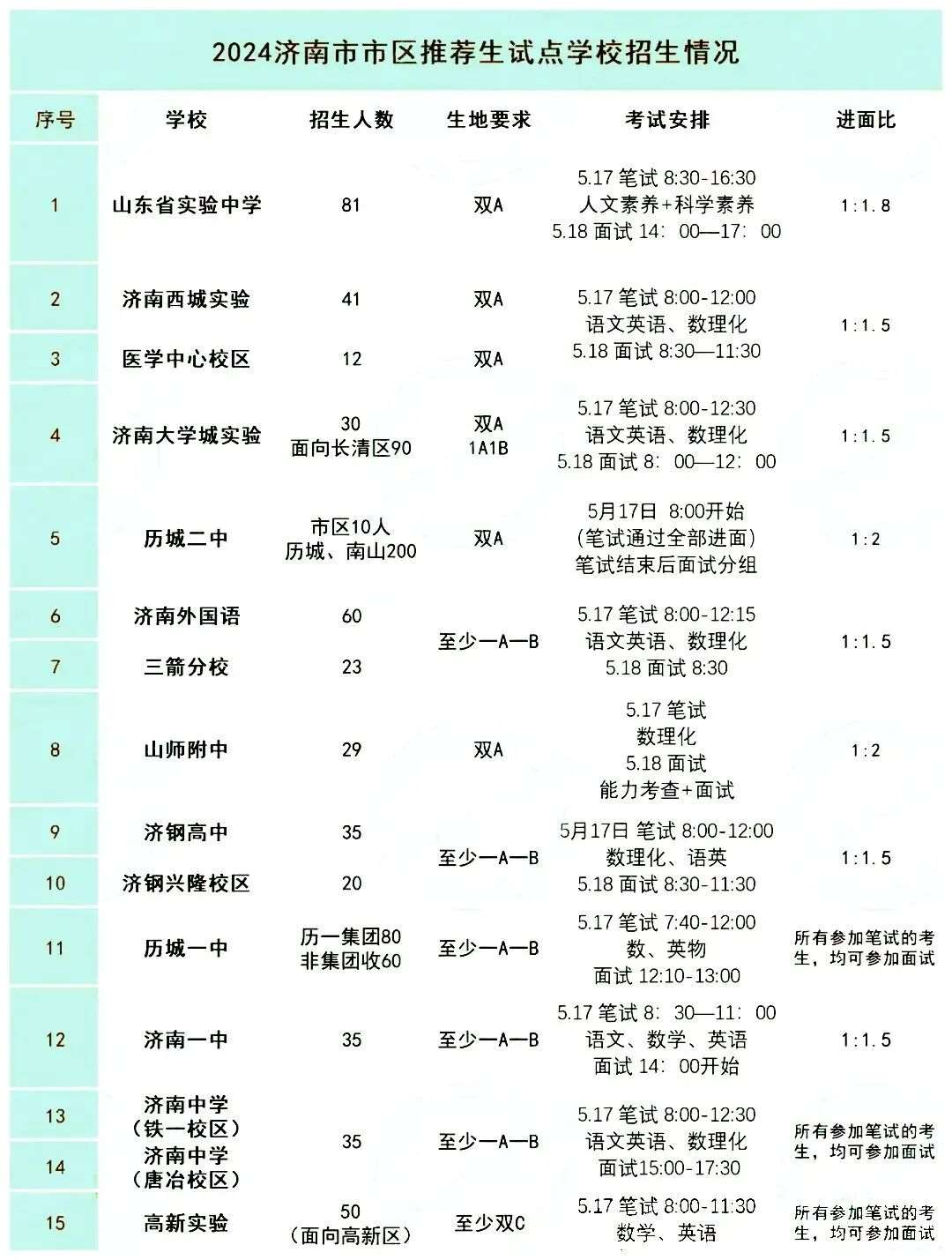 除了这几所高中学校之外,济南高新区实验中学、长清第一中学、长清中学、济北中学、章丘中学等等高中也有推荐生招生计划,但是由于招生范围是面向固定区县,这里就不展开介绍了。
